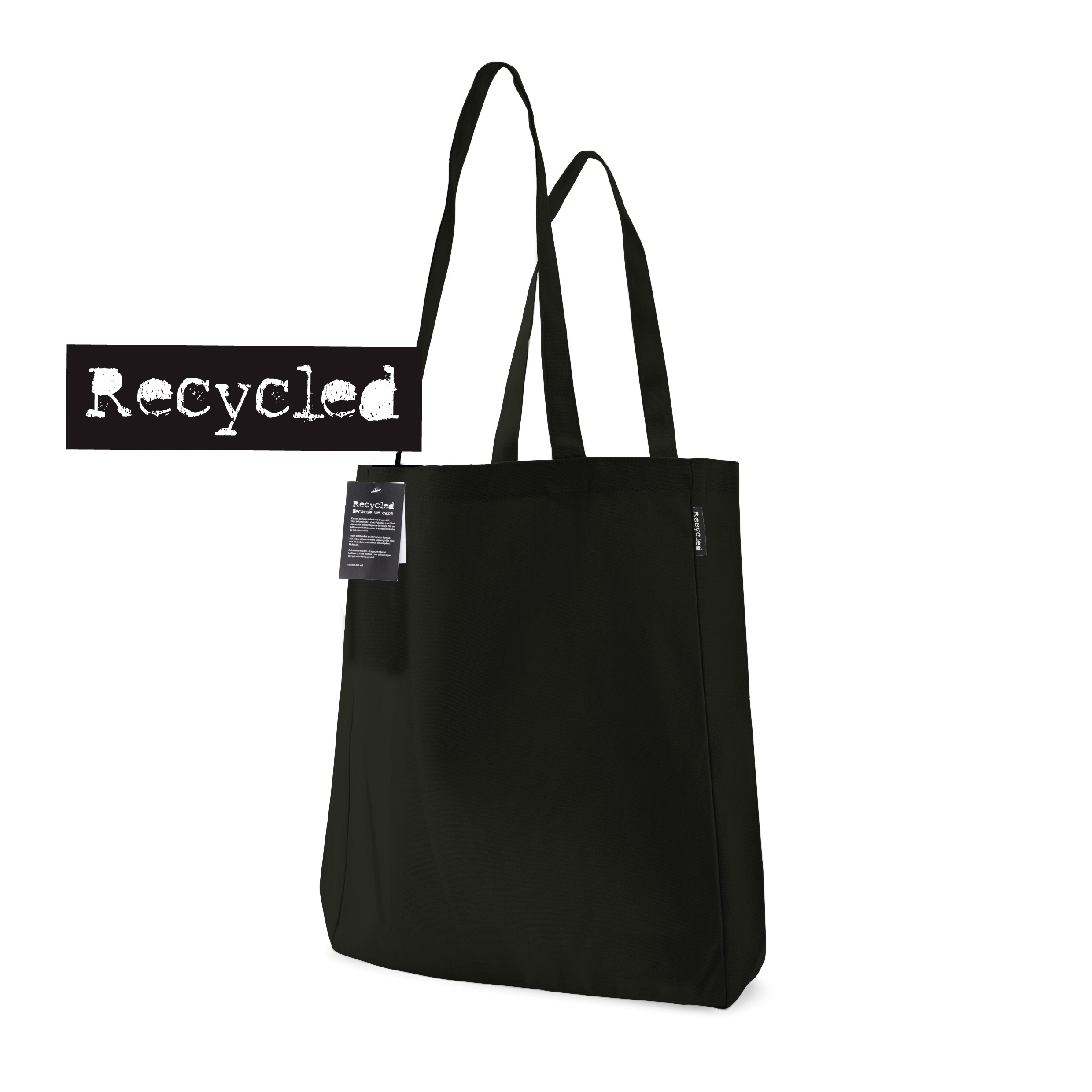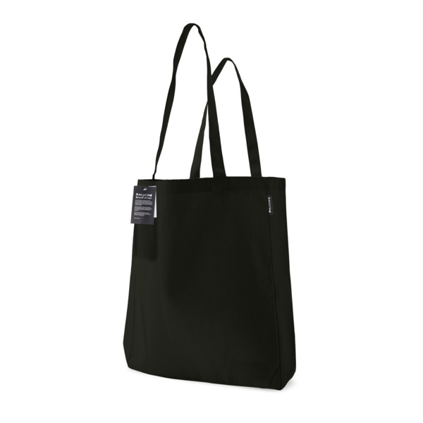 Article No. 40104600This cotton bag is made of 250 gram recycled cotton. The bag features a sewn-on "Recycle" label on one side. A hanging tag, which is fastened with hemp string, tells about the background of the bag and informs what our CSR work stands for.