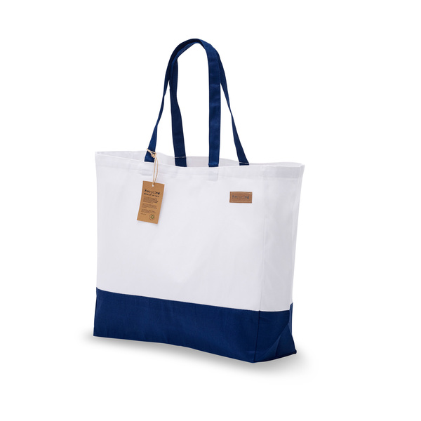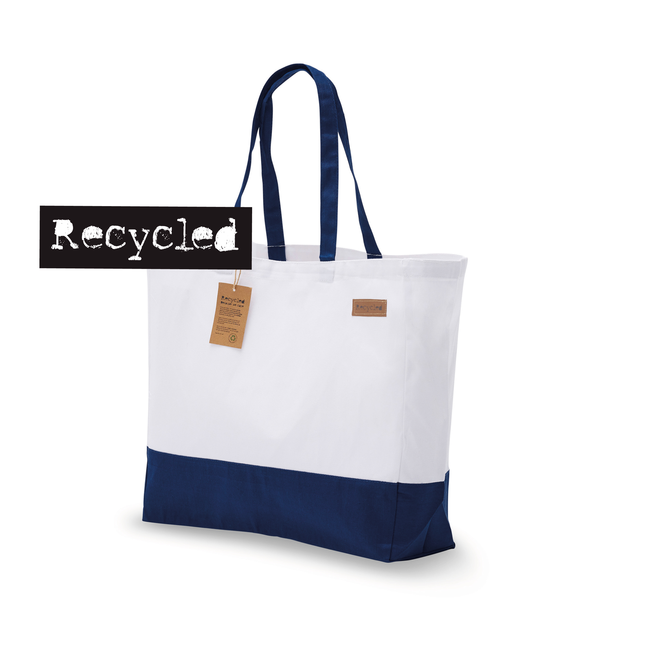 Article No. 40115241This spacious bag made from recycled cotton is the perfect combination of functionality and sustainability. With a dark-colored bottom and handles, it stays fresh longer, no matter the adventures it accompanies you on. The handles are designed to be long enough for comfortable carrying on the shoulder or by hand, offering extra convenience. With a sewn-in Recycle label on one side, it proudly marks its identity as a sustainable and conscious product. Perfect for elevating your brand and leaving a strong, lasting sustainable impression!