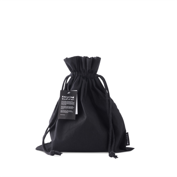 Article No. 40234601NEWS! A storage bag made from recycled cotton, fastened with drawstring cords. Size M is the medium size in the series of three sizes, measuring 30 x 35 cm. This gift bag is perfect for packaging and storing a wide range of products. Unlike single-use materials, it can be used again and again! The bag is made from recycled cotton, also known as post-consumer recycled cotton. This means it is crafted from leftover fabrics, scraps, and similar materials that have been repurposed and woven into new bags instead of being discarded. The recycled cotton helps reduce global waste and ensures that the Earth's resources are handled wisely. A hangtag provides information about the fabric and notes that the bag is produced in a socially responsible factory without harmful chemicals. The gift bag is marked with a Recycle label on the side seam to highlight the positive choice.