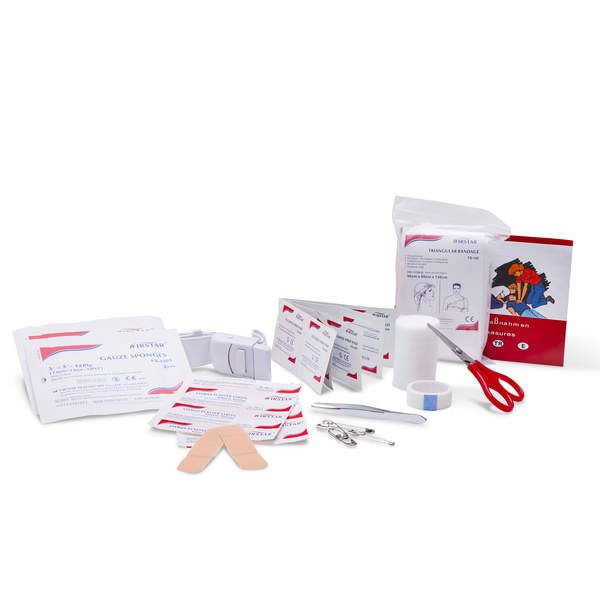 Article No. 32034000NEW PRODUCT! First aid bag with the essentials needed if an accident occurs. A thoughtful gift with a tasteful design. The first aid kit contains a triangular bandage, band-aids, tweezers, safety pins, tape, scissors, alcohol prep pad, sterile guaze swab, tourniquet, bandages and first aid guide. Can be printed on front or back. Download design sketch for more info. First aid bag is offered in red, black and light grey. It can also be ordered on trading, with your client’s colour – contact us for more info and for a quote!