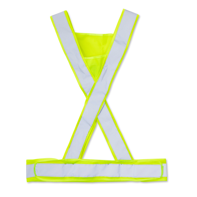 Article No. 30184449CE approved reflector in X-model. Approved according to EN 13356. Well suited for running and city walks. Adjustable on the sides with velcro fastener for best comfort. High-visibility surface on the triangles front and rear. Delivered in a case.