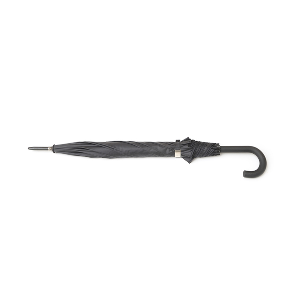 Article No. 20154600A stunning all-black umbrella with J-shaped rubberized handle for an extra good grip. Automatic folding. Metal plate on the buckle for discreet pressure or embossing (embossed logo only for special - order).