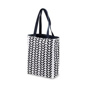 OUTLET-pris! En vändbar kasse med mönstrad insida. Utsidan är tillverkad i återunnen bomull i kraftig bomullscanvas. Kassen har sido- och bottenbälg samt ficka med pennfack. Handtagen är anpassade så den kan bäras både i handen och över axeln.